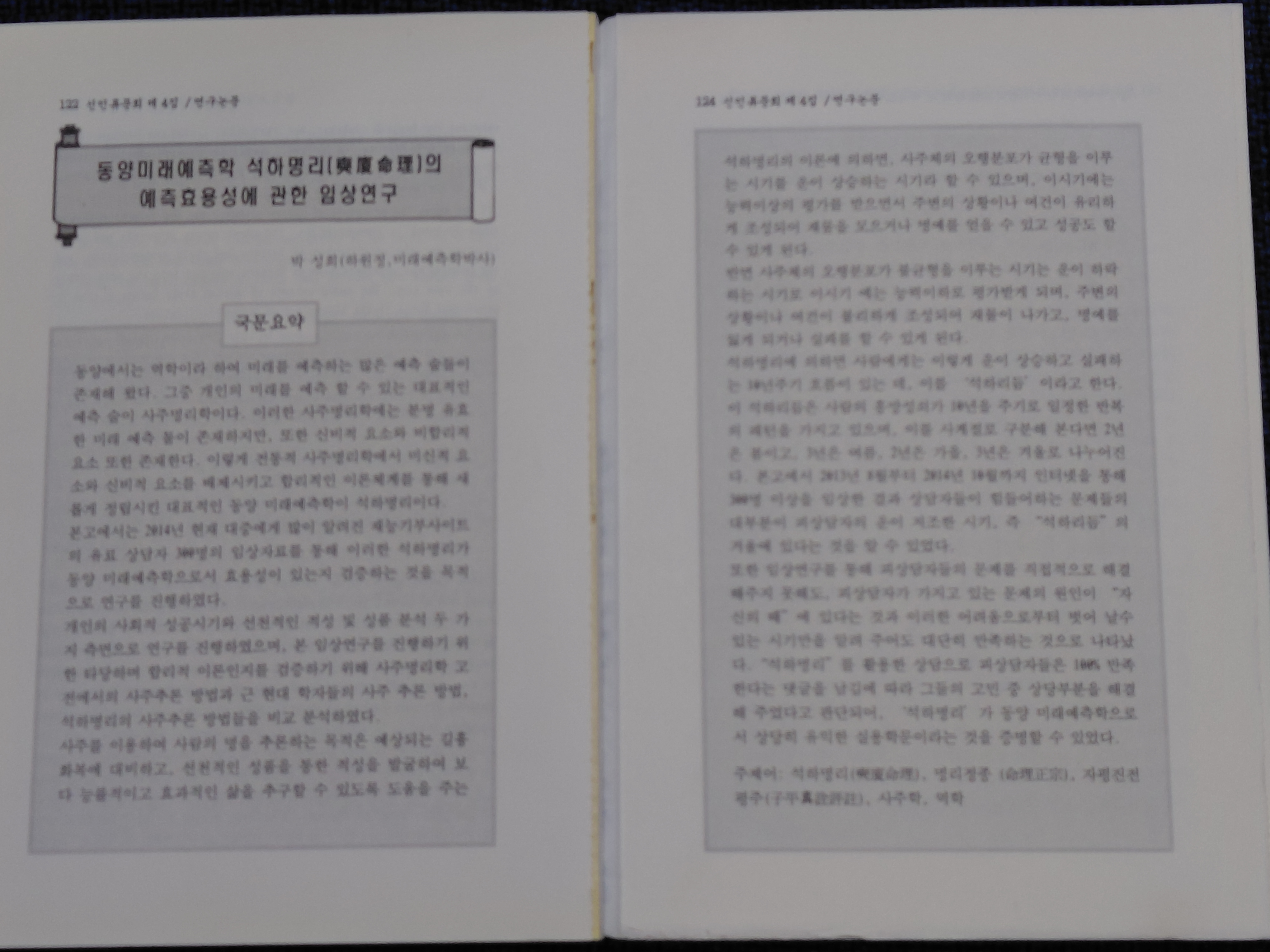 사주명리학 연구 논문 발표