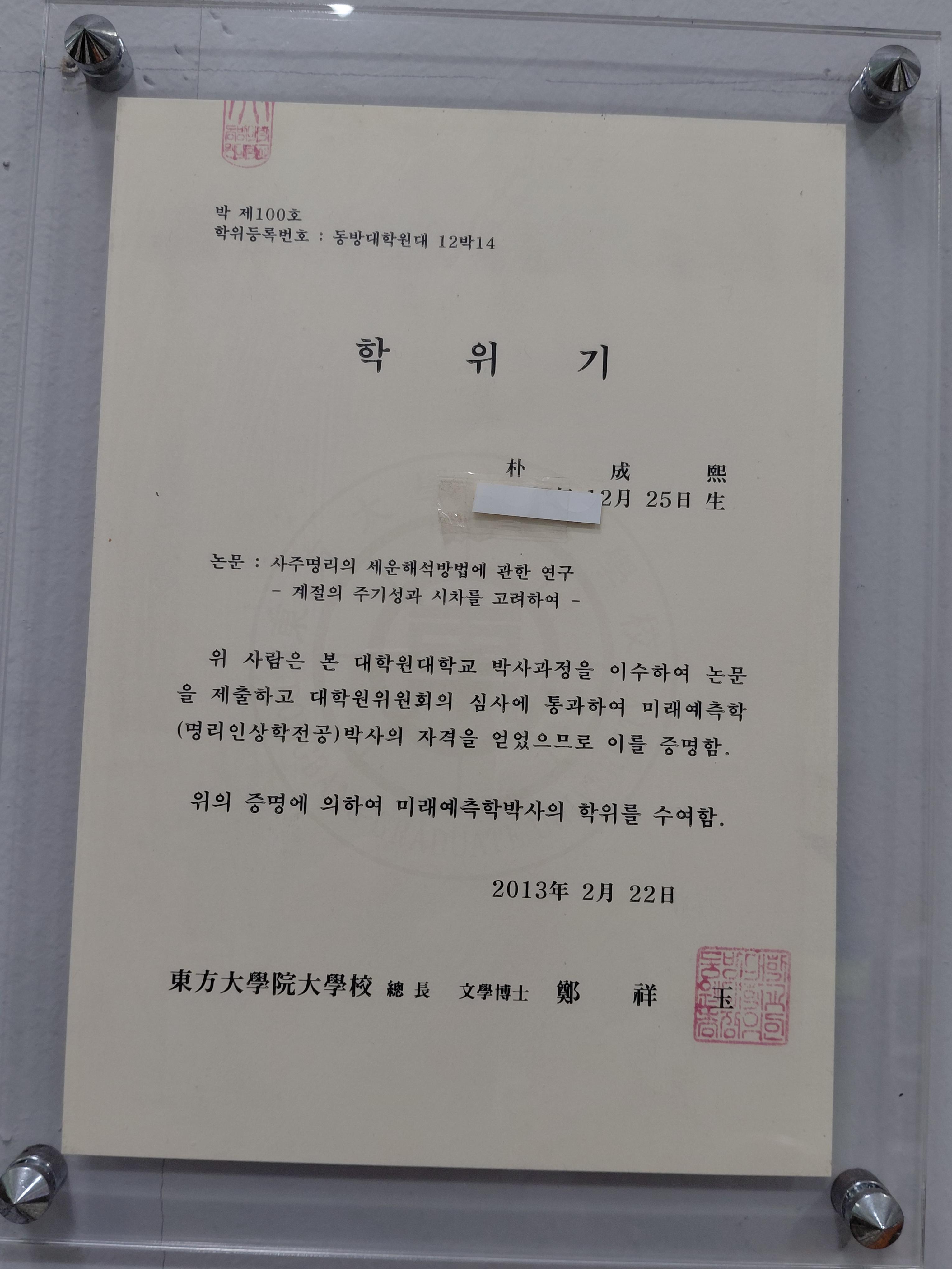 사주명리학을 전공한 미래예측학박사,